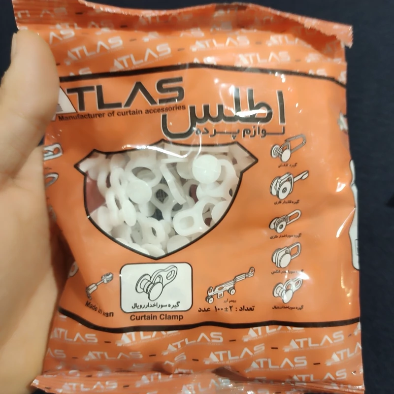 گیره پرده سوراخدار پلاستیکی اطلس برای استفاده از این گیره نیاز به گیره هوکس هم دارین فروش به صورت دونه ای